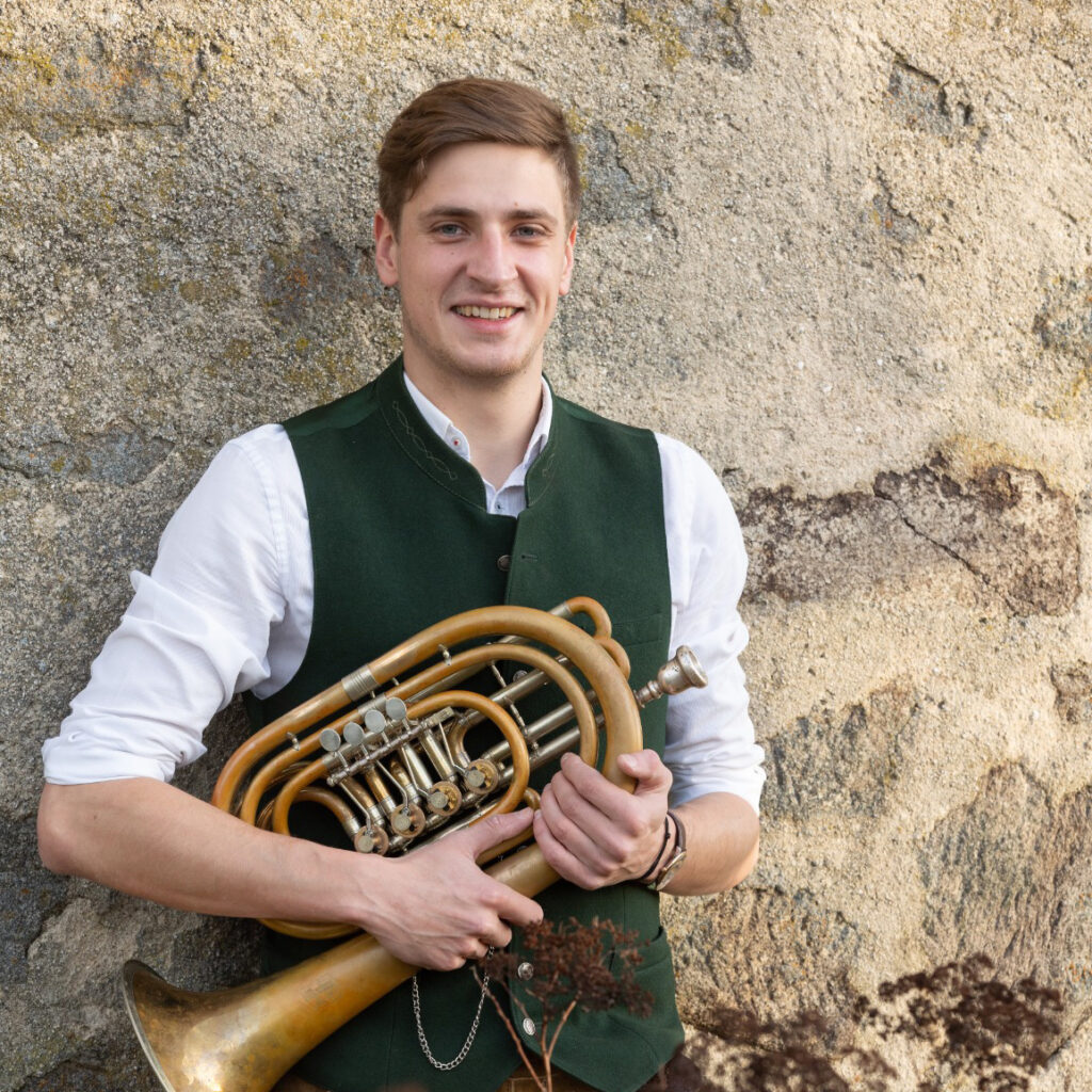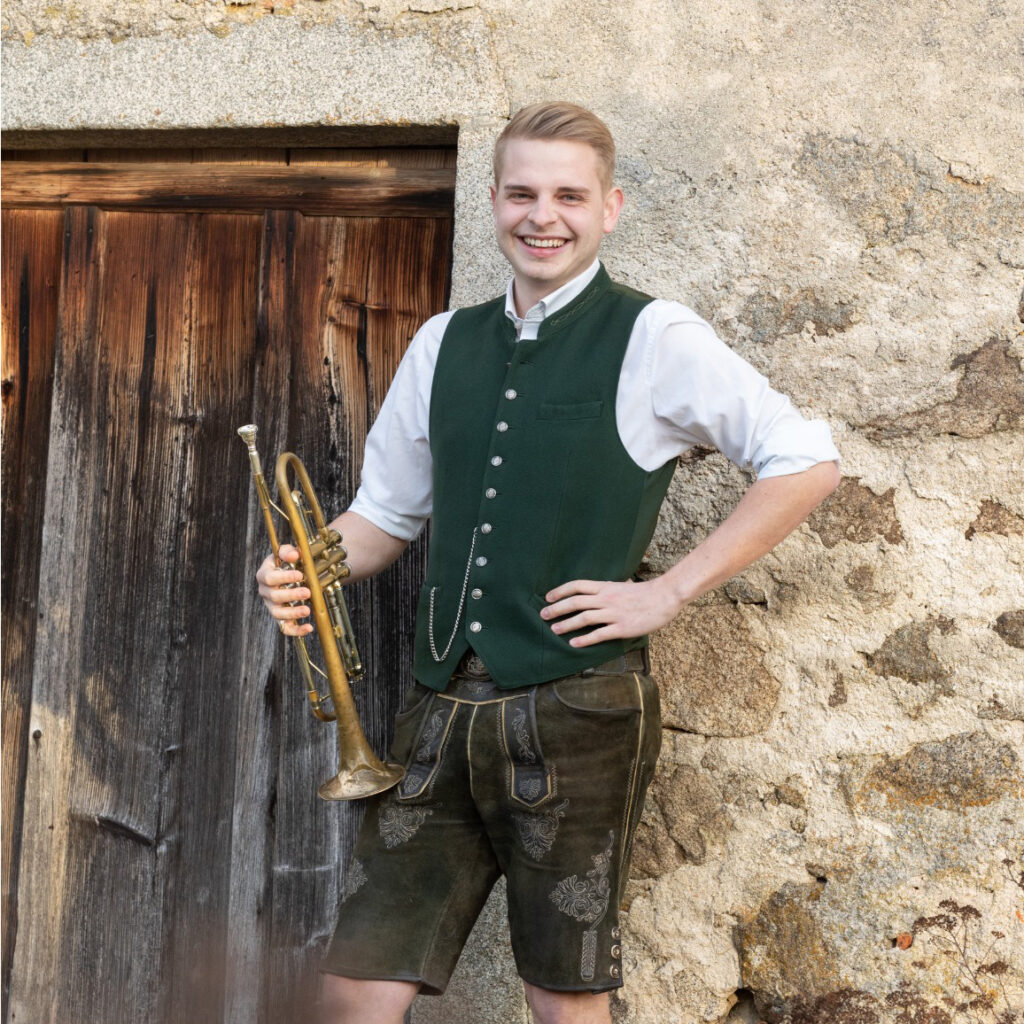 Das Trompetespielen wurde ihm mit dem Bradln in die Wiege gelegt und so ist unser Süwa Junior ein ganz wichtiger Teil unserer Formation.